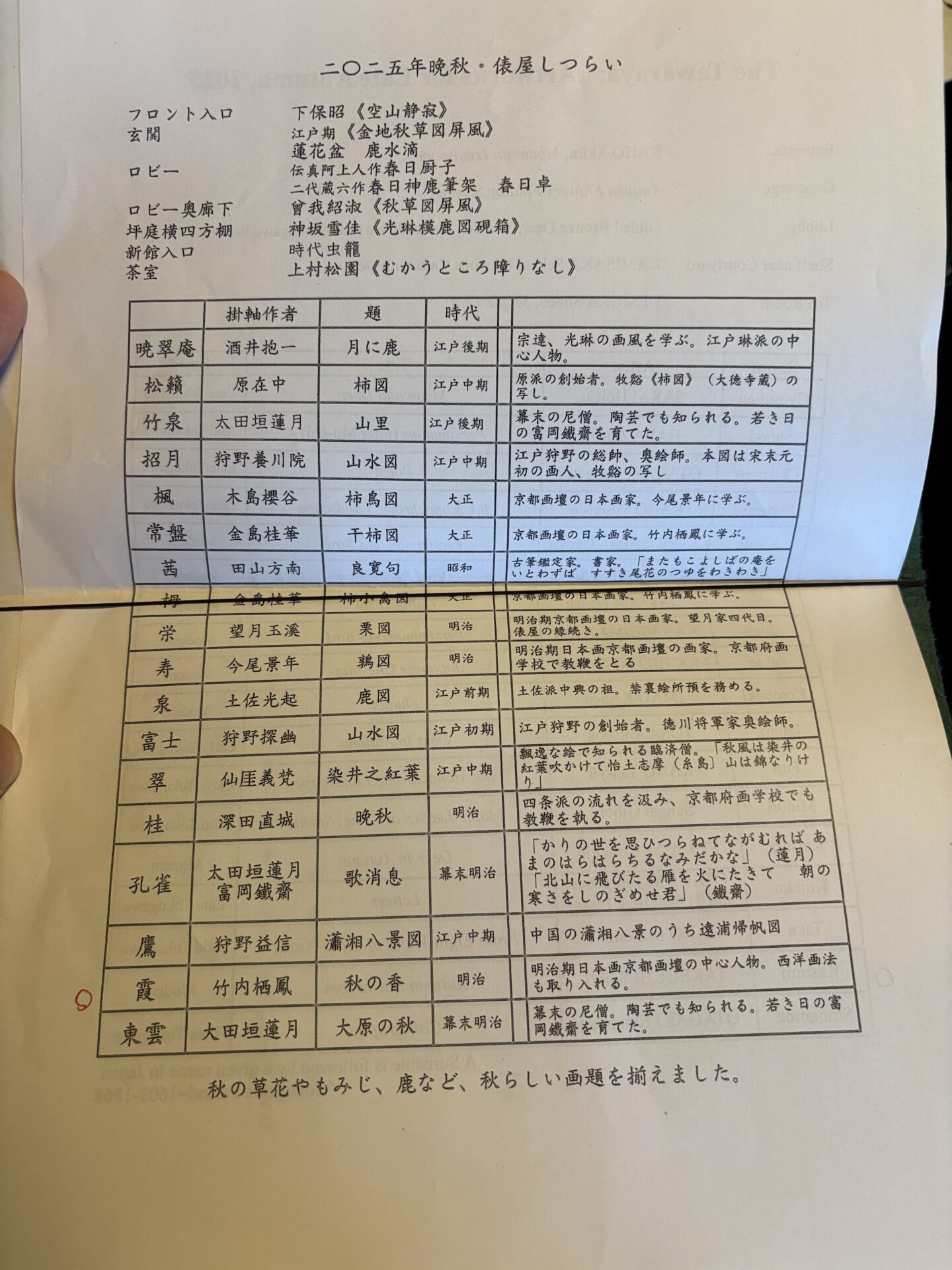 お部屋毎の設え(美術品や掛け軸、調度品)は定期的に変更